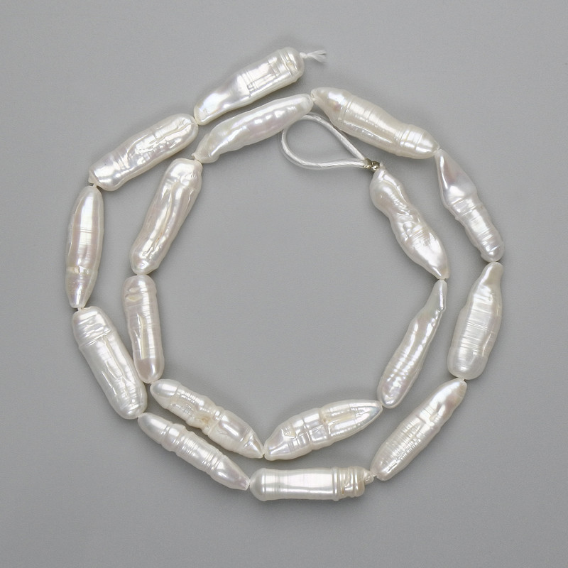 Намистини нанизані на нитку довжиною близько 40 см, що робить їх зручними для створення прикрас різних форматів — від елегантних кольє до сучасних браслетів або сережок. Завдяки природній формі барочних перлин, кожен виріб набуває художнього характеру, ніби створений самою природою. Такі перлини чудово поєднуються з благородними металами, шкіряними шнурами або текстильними елементами, дозволяючи експериментувати з дизайном і стилем.