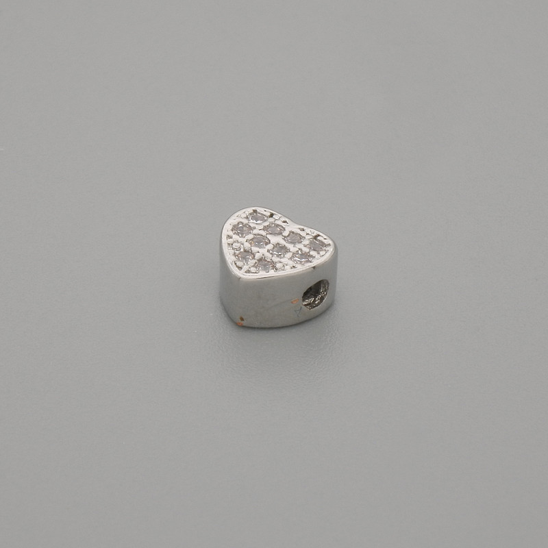 Фурнітура намистина вставка серце стрази колір металу срібло, діаметр 6х5, 5мм+- отвір, діаметр 1, 9мм+- за 1шт