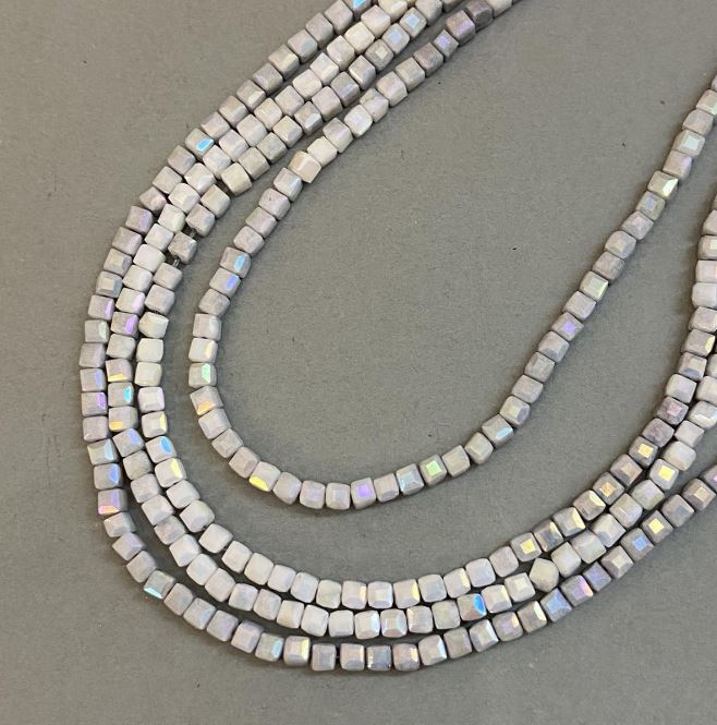 Намистини Чеський Кришталь сірий з напиленням бензин на нитці гранований кубик, діаметр 4х4мм + -, довжина 38см +