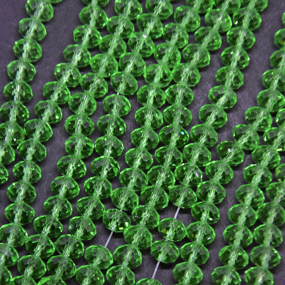 Намистини Чеський Кришталь прозоре зелене смарагдове "рондель", діаметр 8Х6мм, довжина 40см