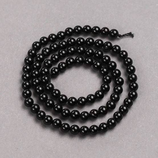 Намистини на нитці з натурального каменю Чорний Турмалін гладка кулька, діаметр 4, 5мм+-, довжина 39см+