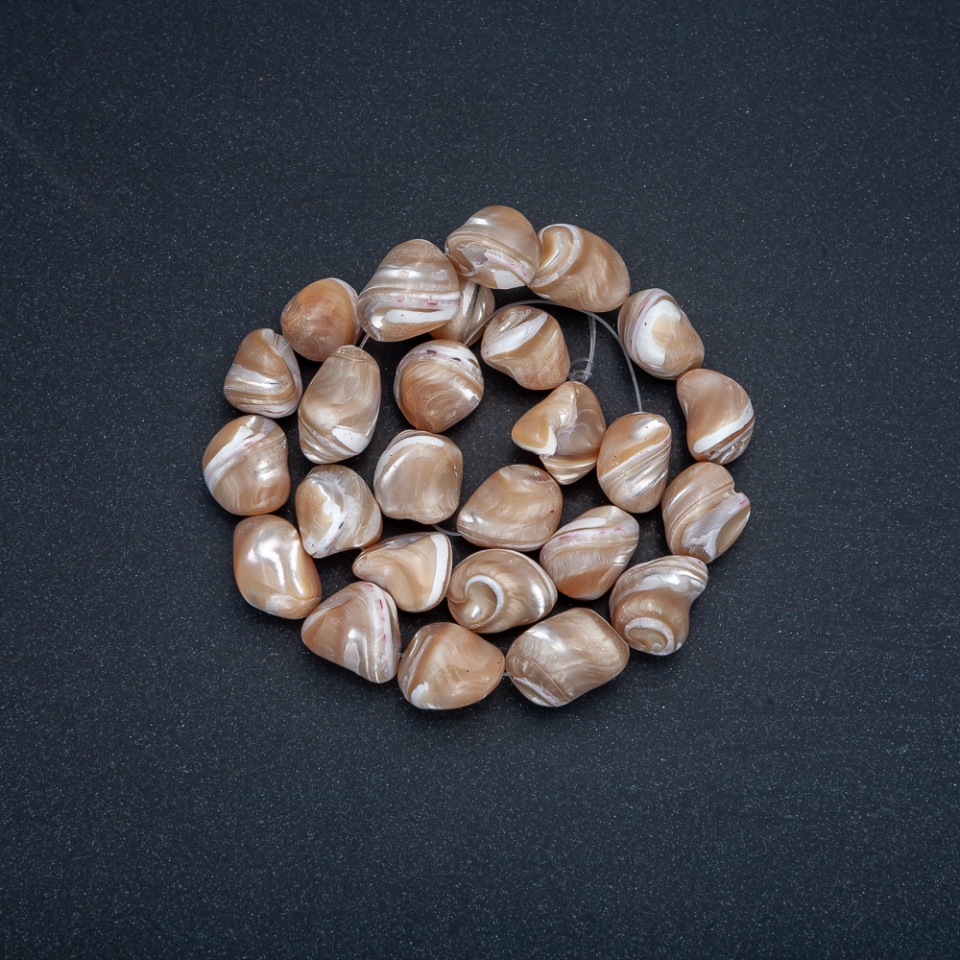 Намистини з натурального перламутру — це справжня знахідка для тих, хто цінує природну красу та ніжний блиск морських скарбів. Кожна намистина, відшліфована до м’якої гальтованої форми, вражає глибиною відтінків бежевого, що переливаються теплими тонами піску, молока та світлого меду. Їхня поверхня відбиває світло, створюючи ефект делікатного сяйва, яке додає виробам витонченості та благородства.