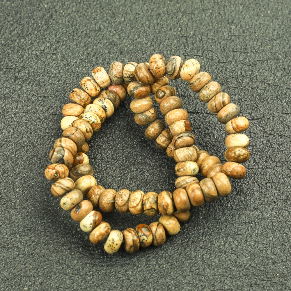 Намистини на нитці з натурального каменю Пейзажна Яшма гладкий рондель, діаметр 8х5мм + -, довжина 40см +