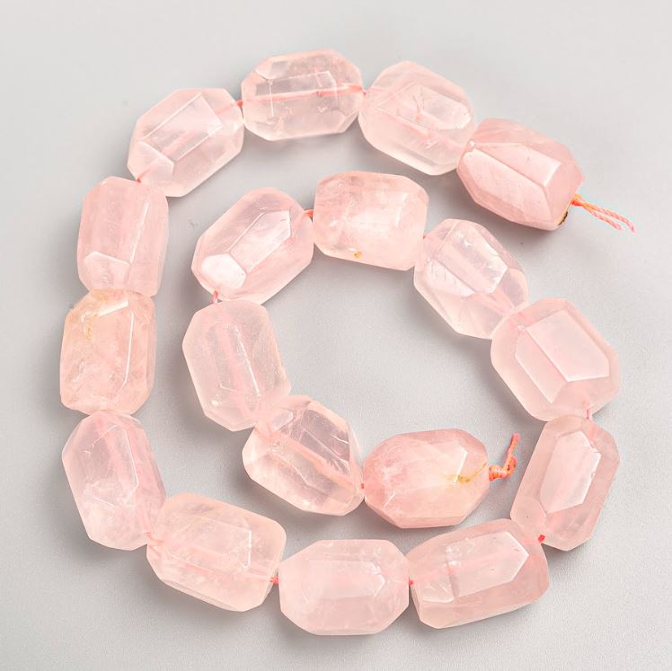 рожевий кварц, намистини, натуральний камінь, фурнітура для прикрас, грановані самородки, намистини на нитці, ручна робота, ювелірні матеріали, творчість, декор, біжутерія, дизайн прикрас