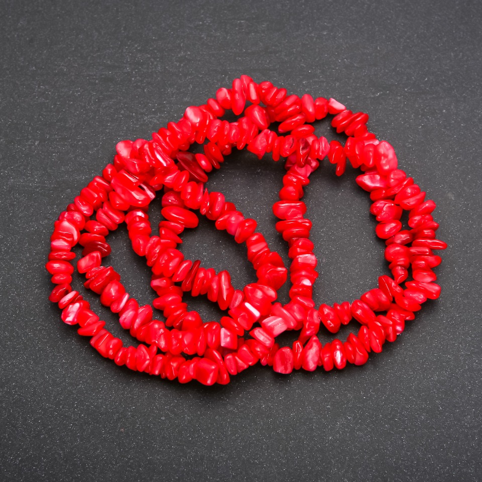 Перламутр — матеріал, який цінується за свою природну текстуру та здатність відбивати світло м’яким сяйвом. Тонування підкреслює його природну красу, надаючи додаткових відтінків — від ніжно-кремових до пастельно-рожевих чи блакитних. Завдяки цьому кожна нитка має власний характер і може стати основою для створення унікальних прикрас.