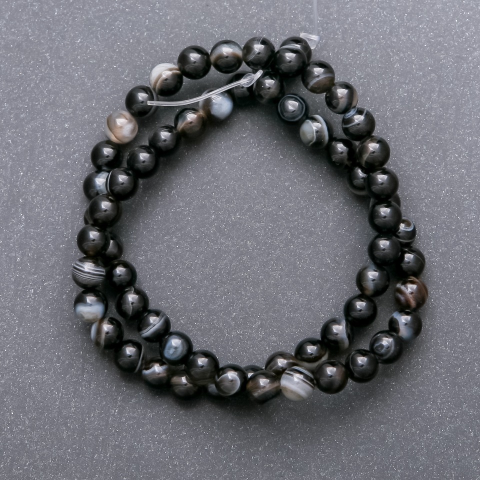 Чорний агат відомий своєю глибокою, насиченою кольоровою палітрою — від глянцевого чорного до м’яких сірих переливів, які надають кожній намистині унікальності. Завдяки поліруванню поверхня каменю має дзеркальний блиск, що красиво відбиває світло, підкреслюючи природну текстуру мінералу. Такий матеріал чудово поєднується як із металевими елементами, так і з іншими натуральними каменями, дозволяючи створювати прикраси різних стилів — від класики до сучасного мінімалізму.