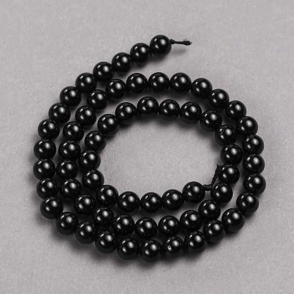 Намистини Чорний Турмалін натуральний камінь гладка кулька, діаметр 6мм+-, довжина 39см+- на нитці