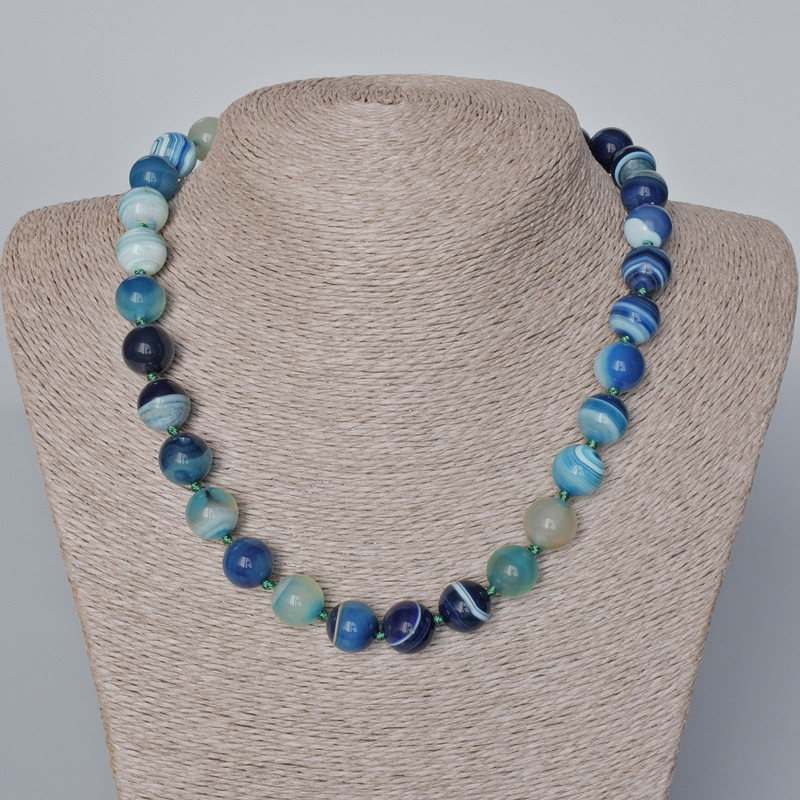 Намисто з синього агату — це не просто аксесуар, а частинка природи, що додає образу глибини, спокою та благородства. Воно створює відчуття гармонії та витонченості, залишаючи приємне враження своєю природною красою.
