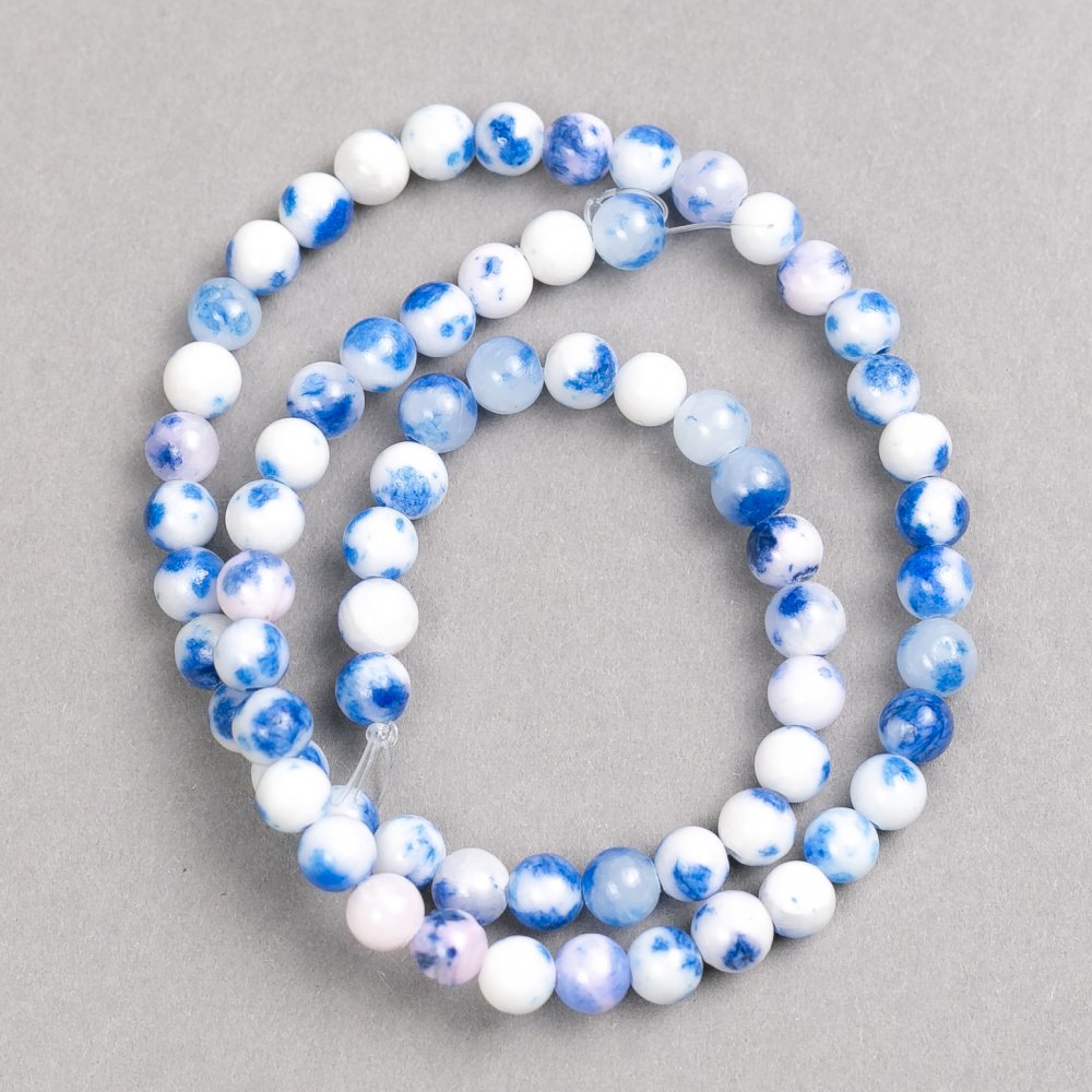 намистини, акрил, фурнітура для прикрас, синьо-білі намистини, намистини на нитці, матеріали для біжутерії, намистини кульки, штучний камінь, намистини содаліт, творчість, хендмейд, біжутерія, дизайн прикрас