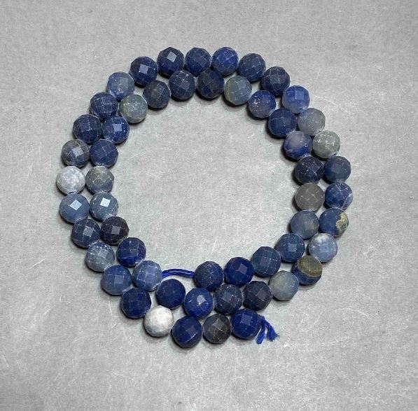 Синій авантюрин — це камінь, який захоплює глибиною кольору та чарівним блиском, що нагадує зоряне небо. Намистини з цього матеріалу виглядають вишукано та водночас загадково, створюючи ефект мерехтіння при кожному русі. Грановані кульки діаметром близько 7,5 мм нанизані на нитку довжиною приблизно 39 см, що робить їх зручними для використання у створенні прикрас різного типу — від елегантних браслетів до витончених кольє.