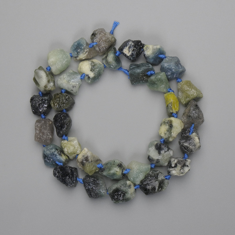 Намистини з синього турмаліну — це втілення природної краси, сили та витонченості. Кожна намистина зберігає свою унікальну форму, адже камінь залишено у майже первісному, необробленому вигляді. Така природна текстура створює особливу глибину кольору, де насичений синій переливається від темно-сапфірового до м’якого блакитного відтінку, нагадуючи спокій морських хвиль чи глибину нічного неба.
