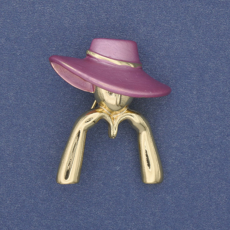 Брошка Дівчина в рожевій шляпі золотистий метал 34х30мм+