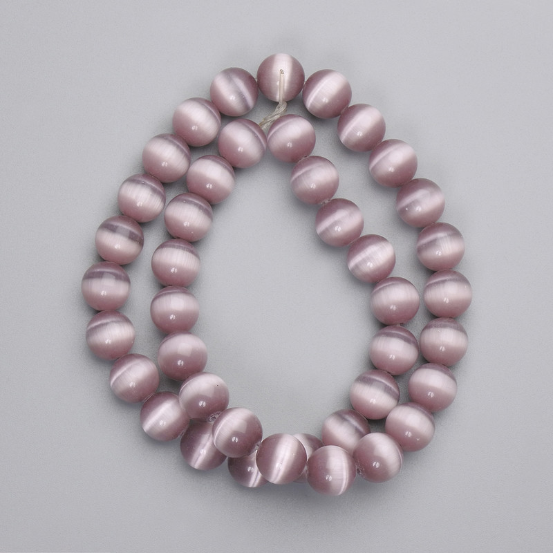 Намистини «Котяче око» — це матеріал, який поєднує в собі витончену естетику природного сяйва та практичність у роботі. Гладкі кульки діаметром 10 мм нанизані на волосінь, створюючи єдину гармонійну нитку, готову до використання у ваших творчих проєктах. Їхня поверхня має характерний оптичний ефект — м’яку смужку світла, що рухається при зміні кута зору, нагадуючи блиск котячого ока.