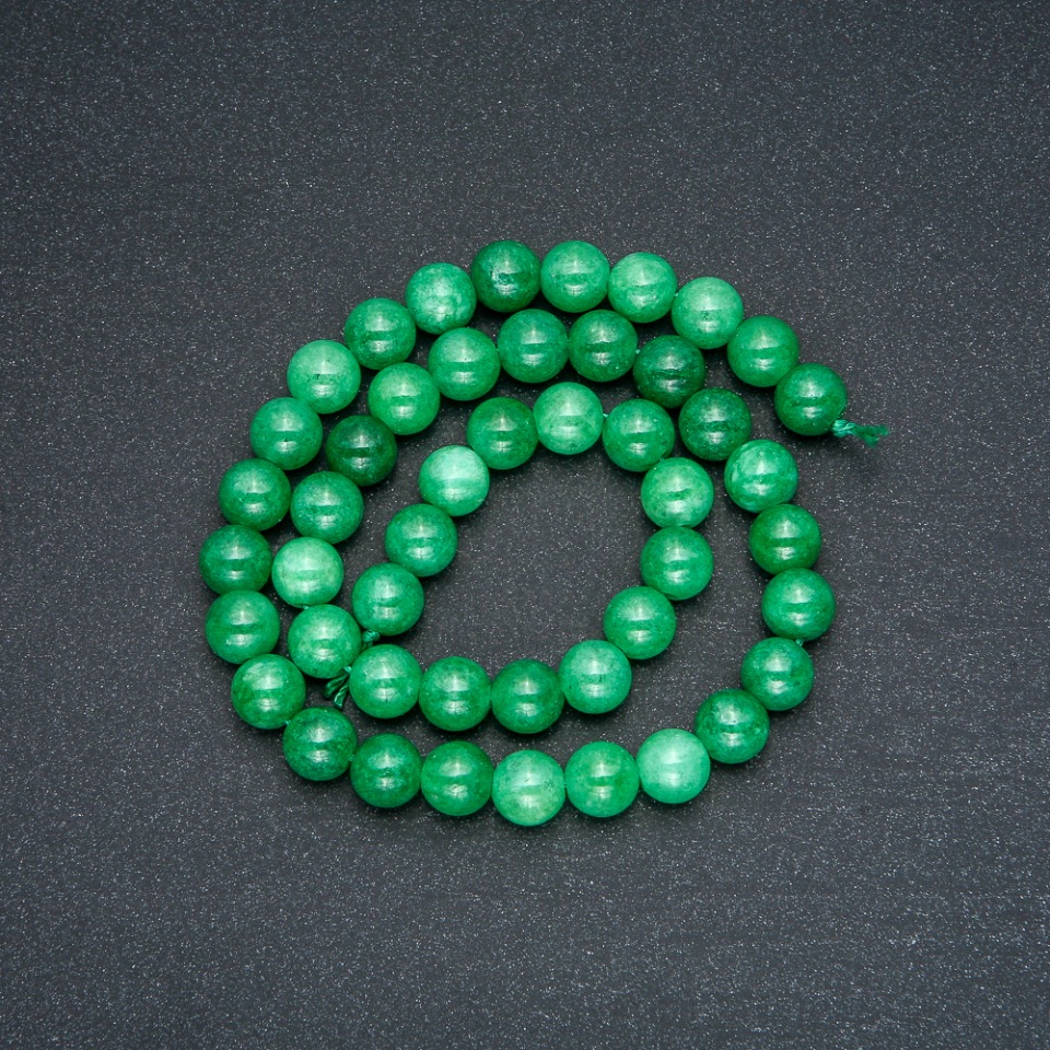Намистини з імітації хризопразу — це гармонійне поєднання природної краси та витонченого блиску, яке надихає створювати прикраси з глибоким характером. Гладкі кульки діаметром 8 мм нанизані на нитку довжиною близько 38 см, утворюючи рівномірну, приємну на дотик фактуру. Відтінки зеленого — від ніжно-м’ятного до насиченого смарагдового — нагадують весняну свіжість і природну енергію каменю.