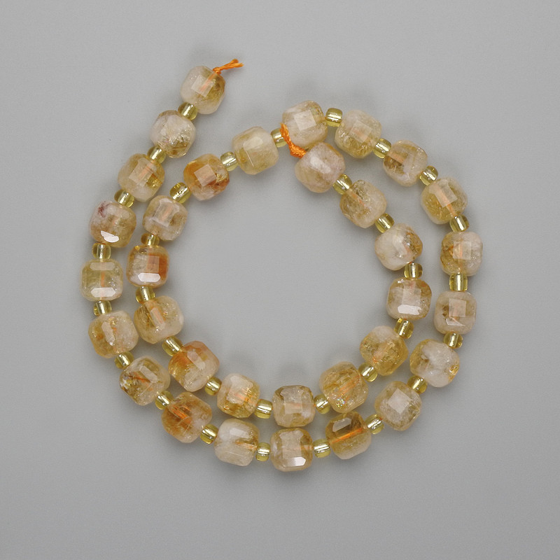 Намистини Цитрин гранований кубик 8, 5мм+- бісер 3мм+-, довжина 38см+- на нитці