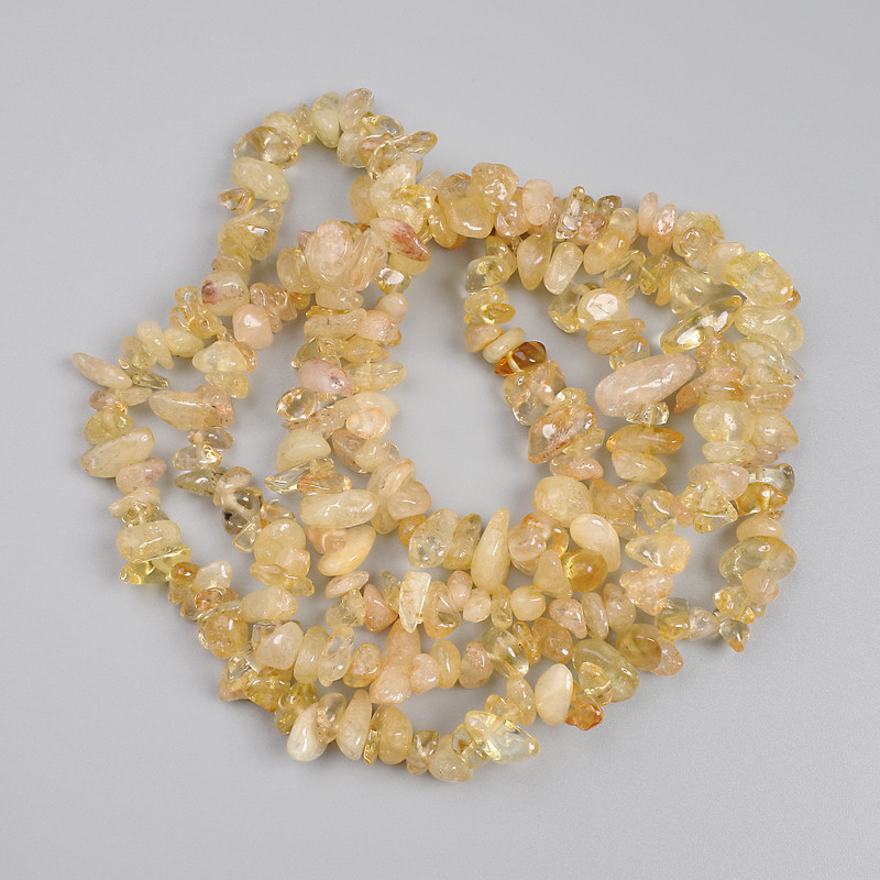 Намистини з цитрину крихта — це втілення природної енергії сонця у формі, доступній для творчості. Їхня тепла палітра відтінків — від прозоро-золотавого до насиченого медового — створює відчуття світла, що грає у кожному русі. Кожна намистина має унікальну форму, що надає виробам особливої живої фактурності та природної гармонії.