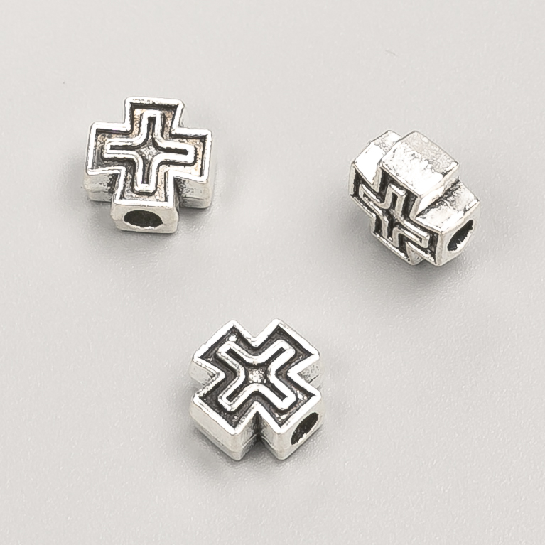 Фурнітура намистина вставка Хрест, діаметр 9х9х5мм фас. 20гр. 18шт+- колір металу "срібло"