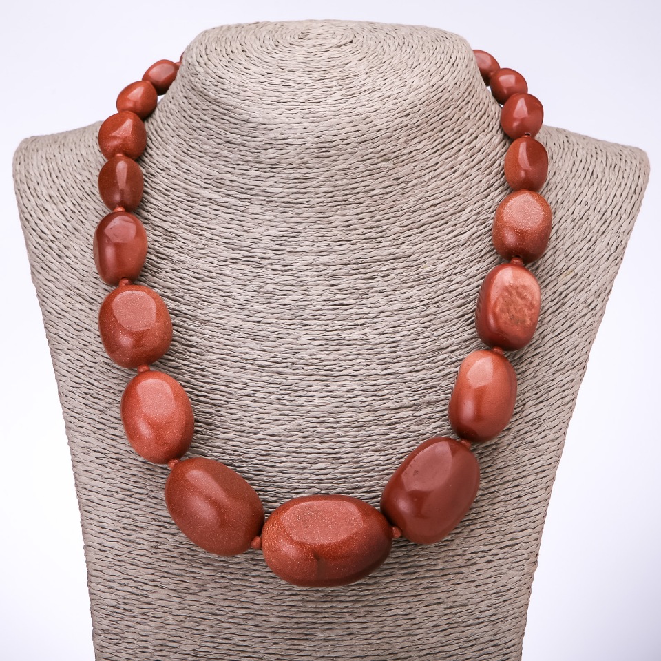 УЦІНКА Намисто "Елегант" Авантюрин (синтетичний) "золотий пісок" велика галтування на збільшення 10х13мм-25х37мм, довжина 50см