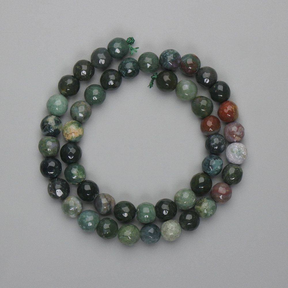 Намистини Моховий Агат гранована кулька, діаметр 8мм+-, довжина 36см+- на нитці
