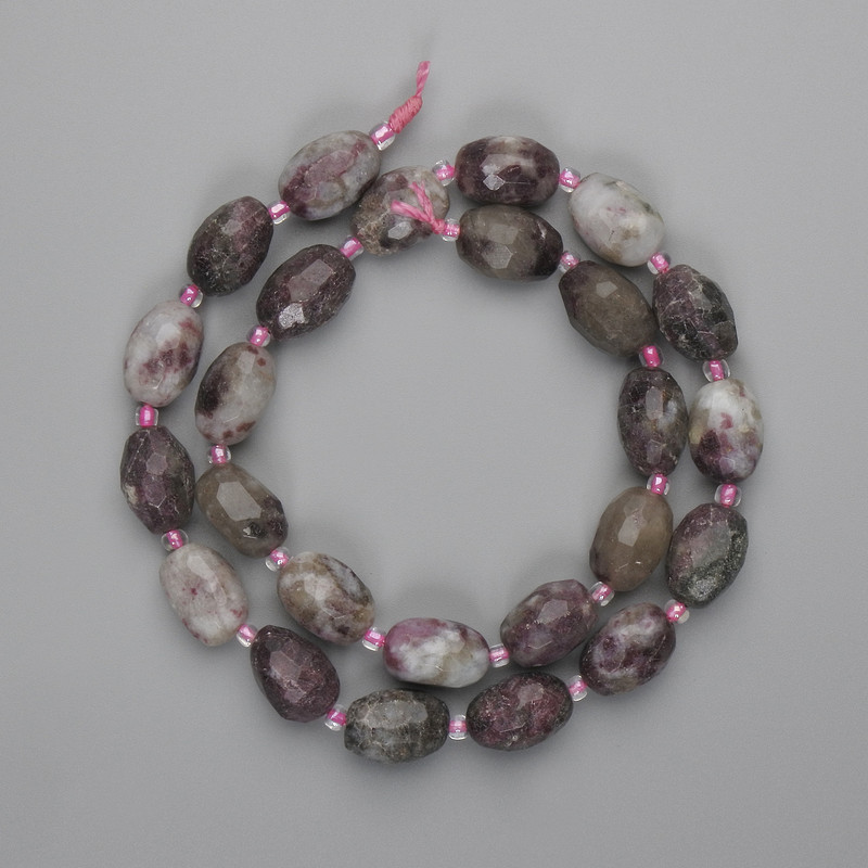 Намистини з турмаліну — це втілення природної гармонії та витонченості, створене самою природою. Кожна грань цього каменю відбиває світло по-особливому, утворюючи гру кольорів, що нагадує ранкову росу на пелюстках. Грановане зерно розміром 14×8–9 мм виглядає благородно й універсально, дозволяючи створювати прикраси, які поєднують природну красу з сучасною естетикою.