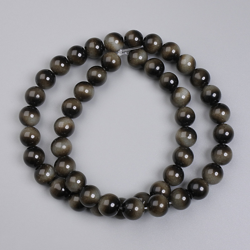 Намистини сіре Тигрове Око (прес) гладка кулька, діаметр 8мм+- на волосіні, довжина 37см+