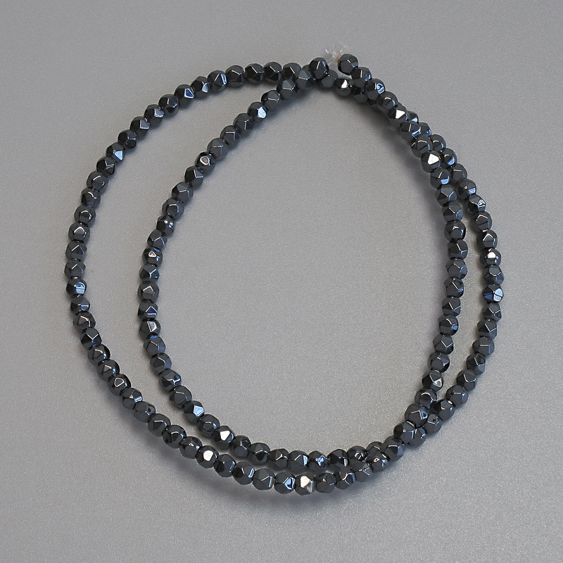 Намистини Гематит багатогранники 3х3мм+- на волосіні, довжина 37см+