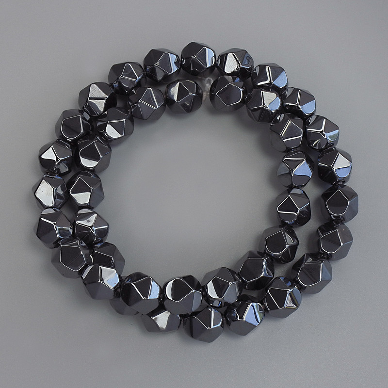 Намистини Гематит багатогранники, діаметр 10х9мм+- на волосіні, довжина 38см+