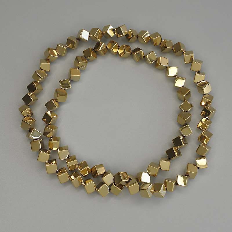 Намистини Гематит колір золото кубик з поперечним отвором 4х4мм+- на волосіні, довжина 38см+
