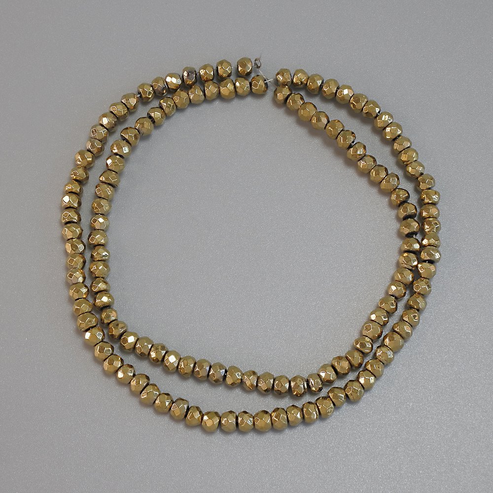 Намистини Гематит колір золото гранований рондель 4х3мм+- на волосіні, довжина 38см+