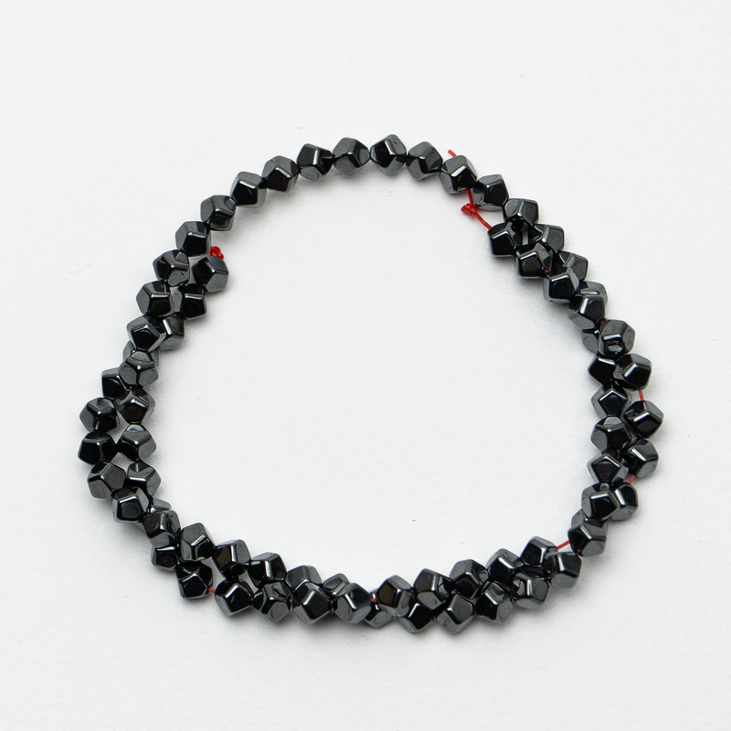 Намистини з Гематиту багатокутник, діаметр 6х6мм+-, довжина 40см+- на волосіні