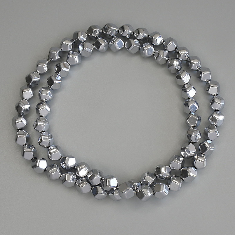 Намистини Гематит колір срібло багатогранники, діаметр 6х6мм+- на волосіні, довжина 40см+