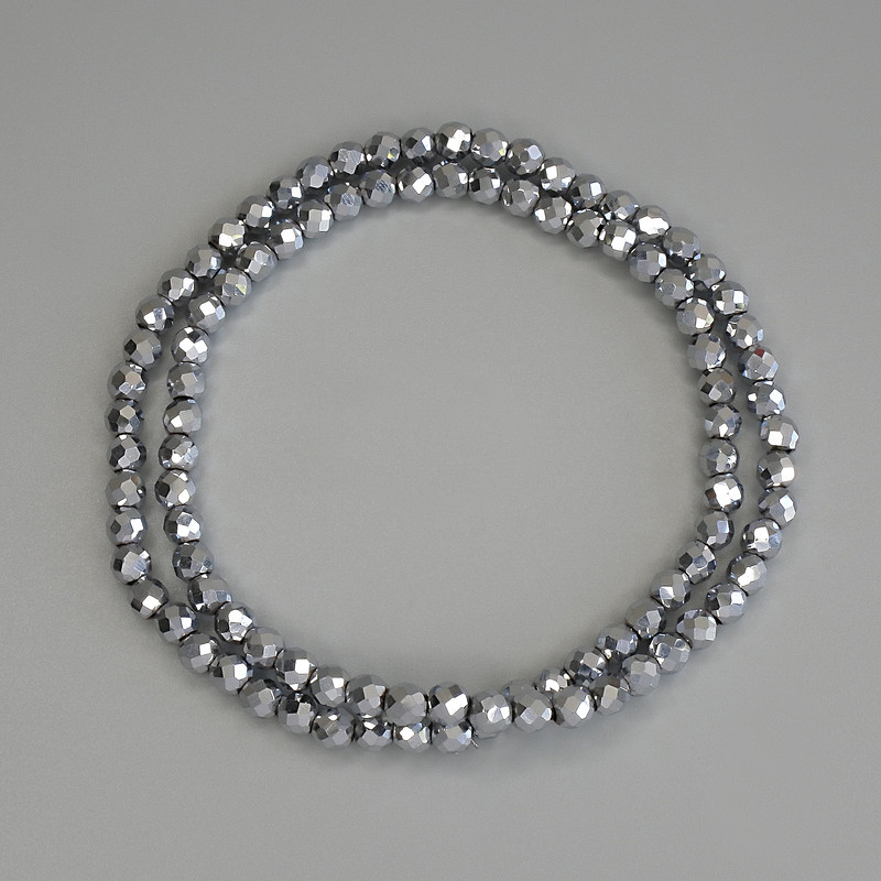 Намистини Гематит колір срібло гранована кулька 4мм+- на волосіні, довжина 38см+