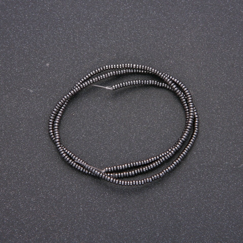 Гематит — природний мінерал, який цінується за свою щільність, дзеркальну поверхню та благородний сталевий відтінок. Намистини діаметром 2–3×1,15 мм мають витончений вигляд, що дозволяє використовувати їх як основний елемент або як акцент у складних композиціях. Вони чудово поєднуються з іншими натуральними каменями, склом, перлинами чи металевими деталями, створюючи гармонійні контрасти та цікаві текстурні рішення.