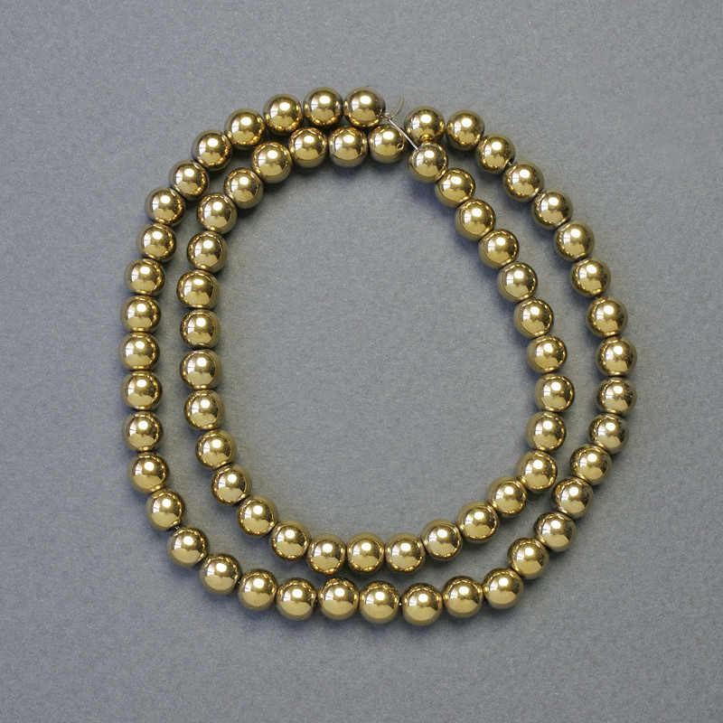 Намистини Гематит гладка кулька колір золото, діаметр 6мм+-, довжина 41см+- низка
