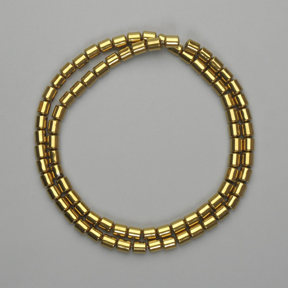 Намистини Гематит циліндр 5х4мм+- колір золото, довжина 40см+