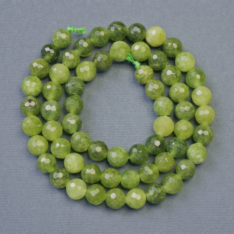 Намистини з натурального каменю Жадеїт гранована кулька, діаметр 6мм+-, довжина 37см+