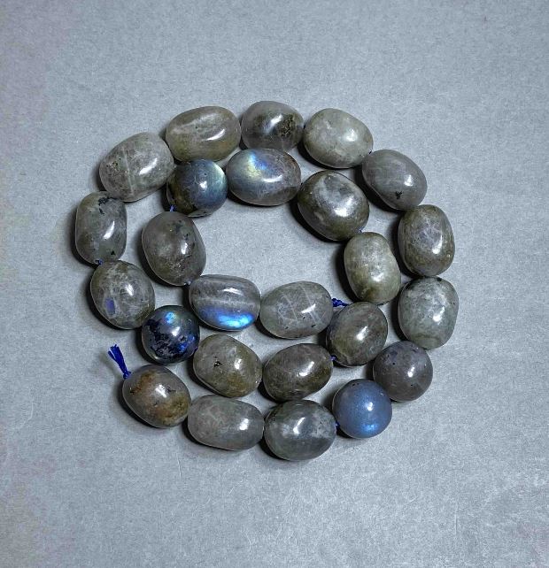 Намистини Лабрадор галтівка, діаметр 13-17х11-13, 5мм+- на нитці, довжина 39см+