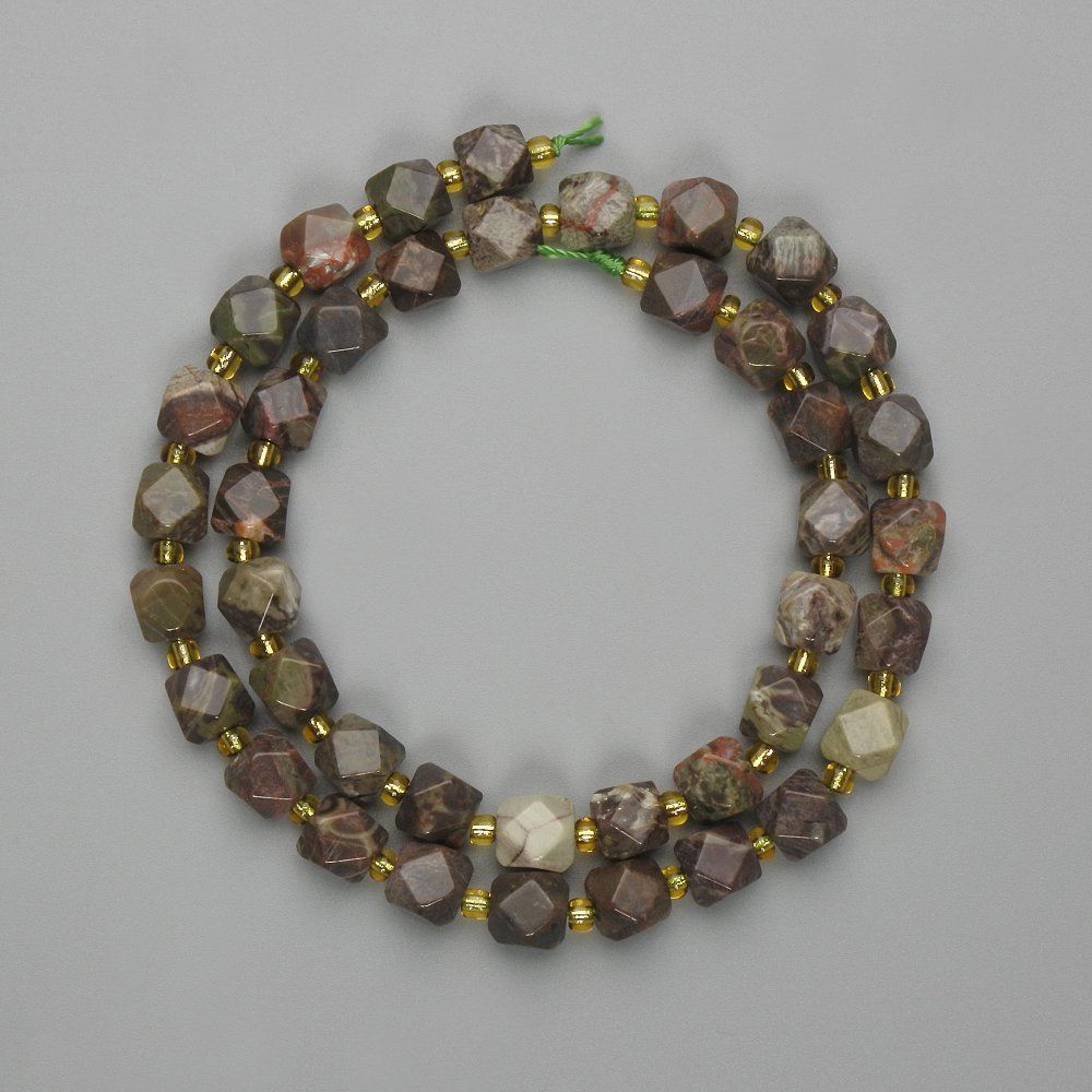 Намистини пейзажна Яшма багатогранники, діаметр 7х7мм+- бісер 3мм+-, довжина 37см+- на нитці