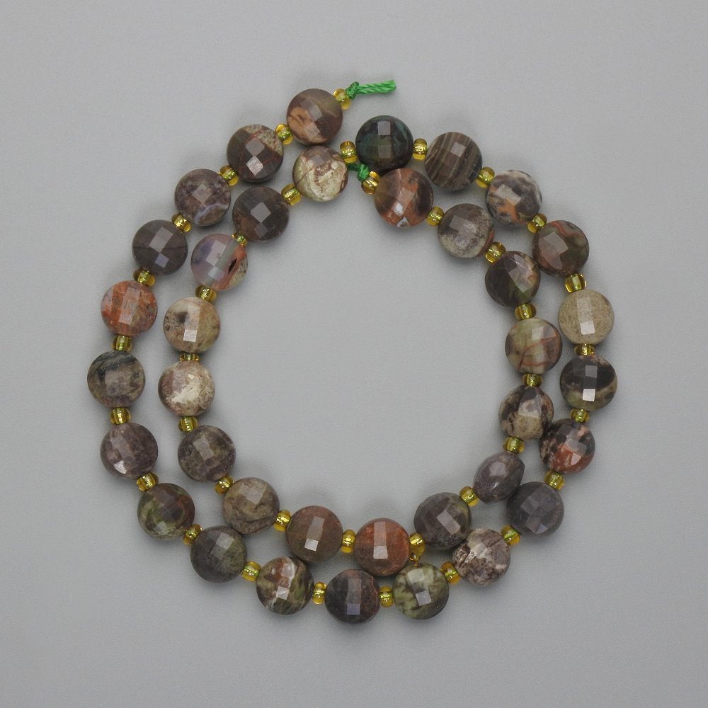 Намистини пейзажна Яшма гранована монетка, діаметр 9мм+- бісер 3мм+-, довжина 38см+- на нитці
