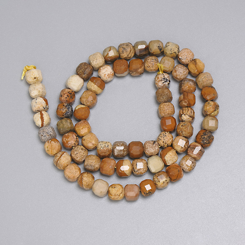 Намистини Яшма пейзажна гранований кубик 5, 5х5, 5мм+-, довжина 38см+- на нитці