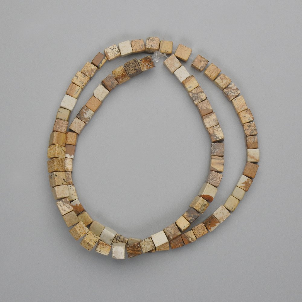Намистини Пейзажна Яшма кубик, діаметр 4, 5х4, 5мм+-, довжина 39см+- на волосіні