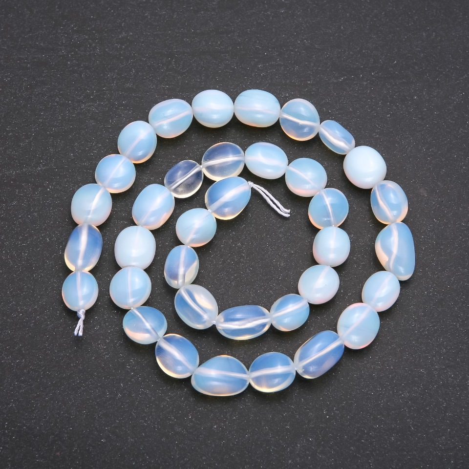 Місячний камінь — це матеріал, що здавна вражає своєю ніжною грою світла, схожою на відблиски місячного сяйва на поверхні води. Намистини з цього каменю у формі галтівки мають м’яку, природну округлість, що створює відчуття гармонії та природної краси. Кожна намистина унікальна, з легкими переливами білого, молочного та перламутрового відтінків, які змінюються залежно від освітлення.