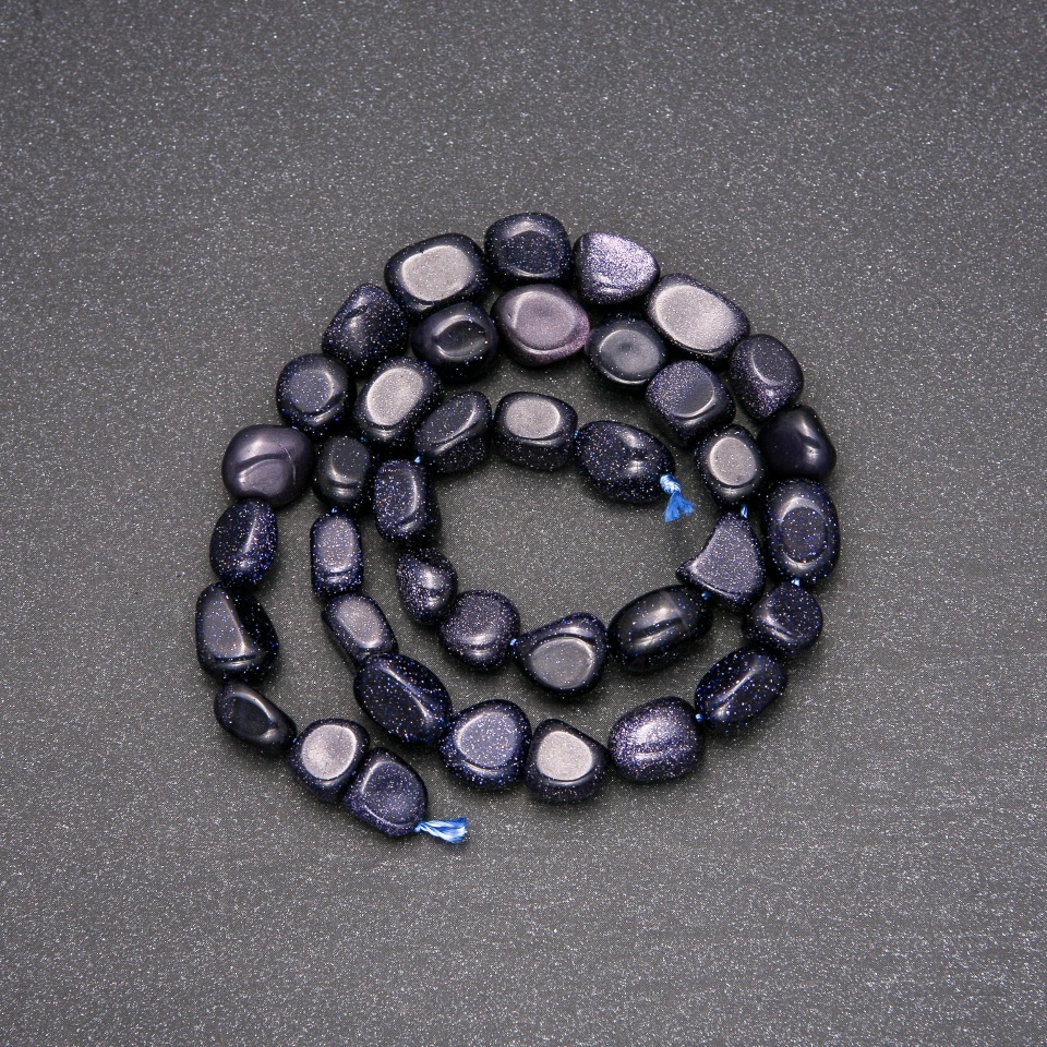 Намистини з натурального каменю Авантюрин Синій Пісок Ніч Каїра галтівка, діаметр 8х10 (+ -) мм, довжина 38см