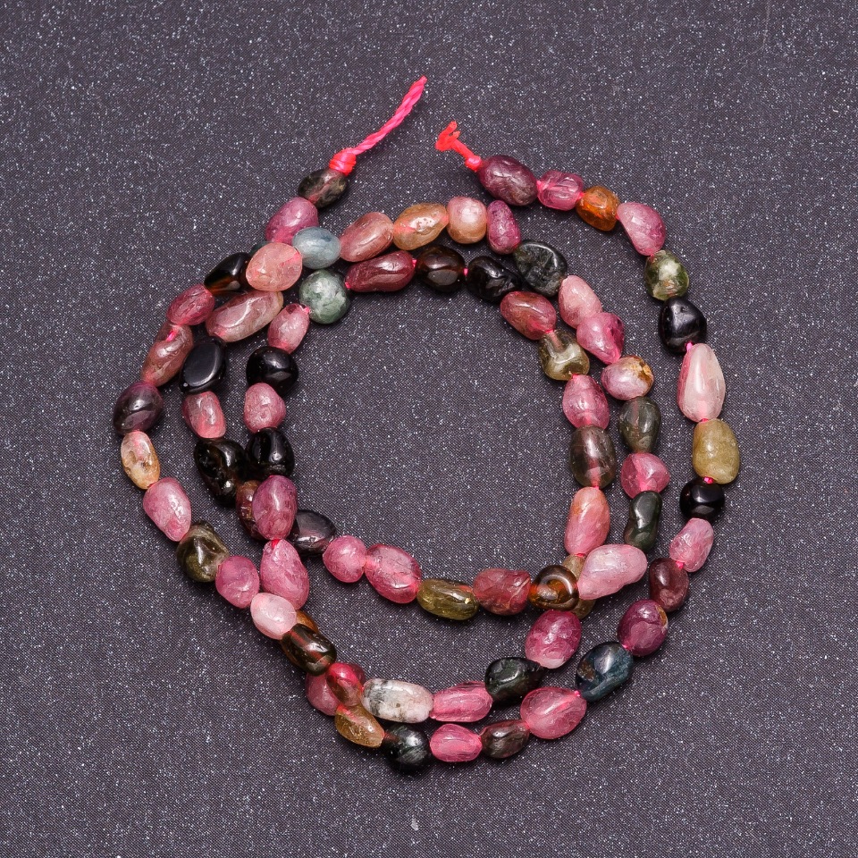 Турмалін відомий своєю багатою палітрою — від ніжно-рожевих і зелених тонів до глибоких темних відтінків. Саме ця природна різноманітність робить його ідеальним вибором для дизайнерів, які цінують природну естетику та прагнуть створювати прикраси з живим характером. Кожна намистина може стати акцентом у вашій роботі, додаючи виробу глибини та природного шарму.