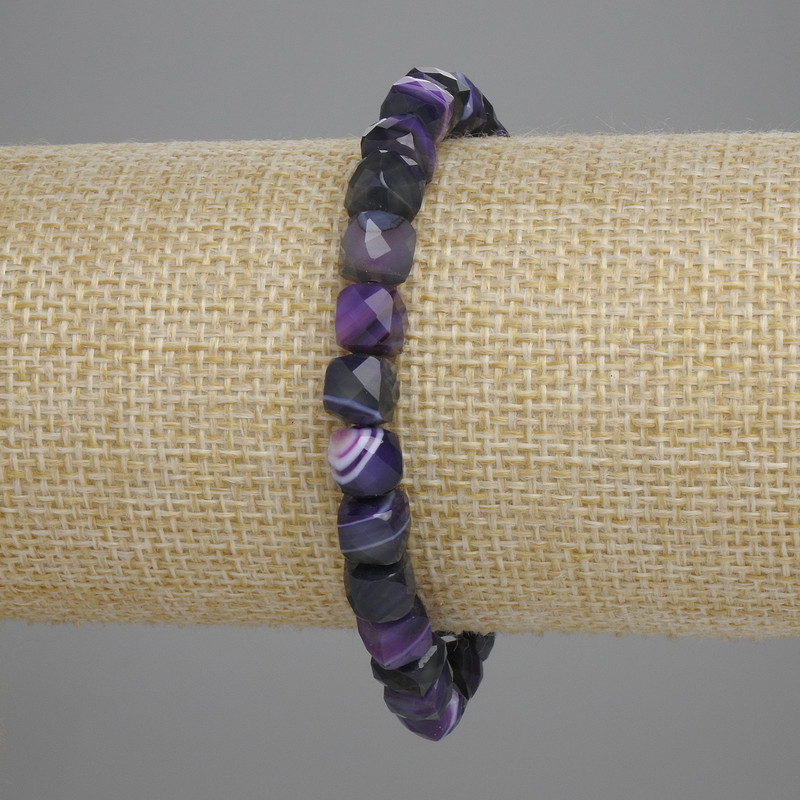 Браслет фіолетовий Агат гранований кубик7х7мм+-, довжина 18см+-стрейч