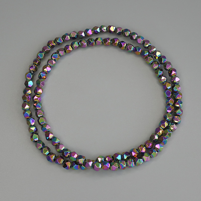 Намистини Гематит райдужний колір багатогранники, діаметр 3, 5х3, 5мм+- на волосіні, довжина 40см+