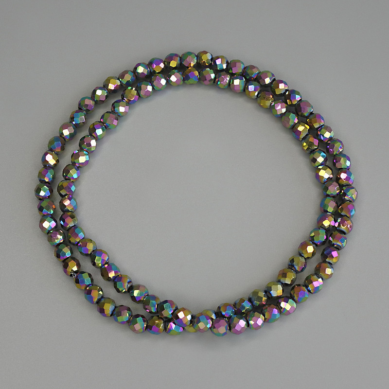 Намистини Гематит райдужний колір гранована кулька 4мм+- на волосіні, довжина 38см+