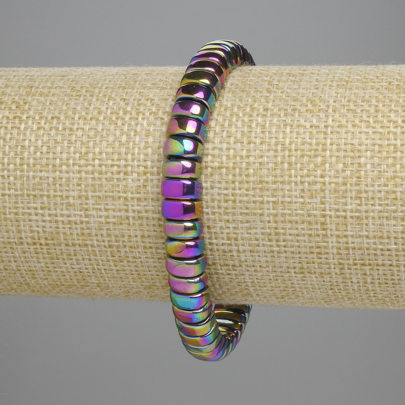 Браслет Гематит райдужний рондель півколо 8х3, 5мм+-, довжина 18см+- стрейч
