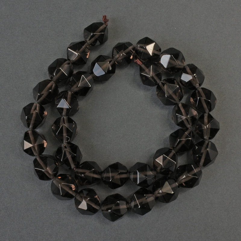 Намистини Раухтопаз багатогранники, діаметр 12х10мм+-, довжина 38см+- на нитці