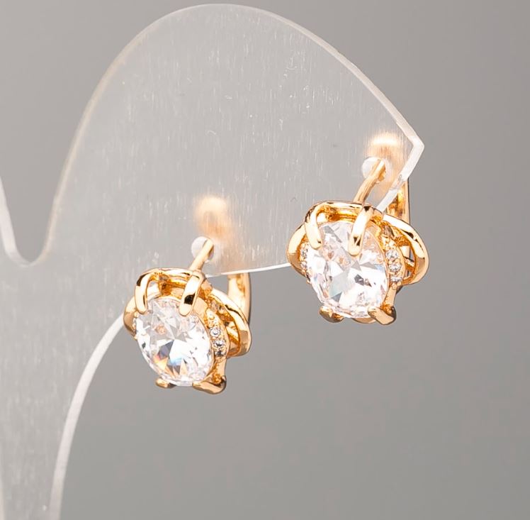 сережки, біжутерія, позолота 18К, Xuping, білий кристал, елегантність, класичний стиль, жіночі прикраси, святковий образ, подарунок, аксесуар, сяйво, витонченість